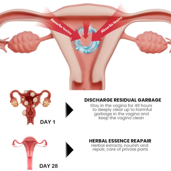Helps the vagina restore the balance of normal vaginal flora and inhibits the reproduction of harmful flora such as Staphylococcus aureus, Candida albicans, Escherichia coli and so on. Effectively eliminates vaginal odor and bacterial inflammation. Unblocks the body’s detoxification channels.
