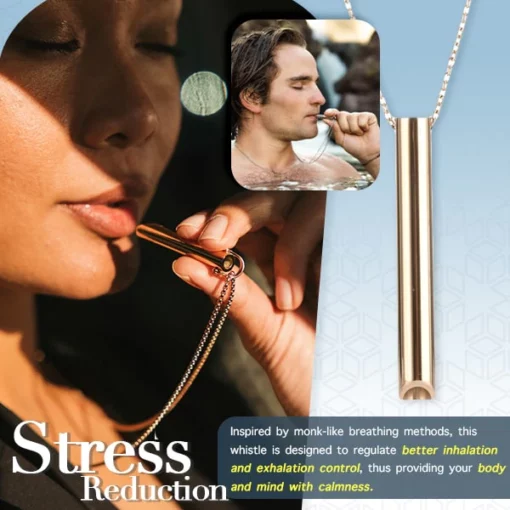 A mindful breathing exercise tool with the use of split-path airflow design & breathing therapy, letting users to slow down their exhale to ~10 seconds. Effectively reduces stress, relieve anxiety, prevent burnout, loosen up muscles, combat depression and related mental illnesses.