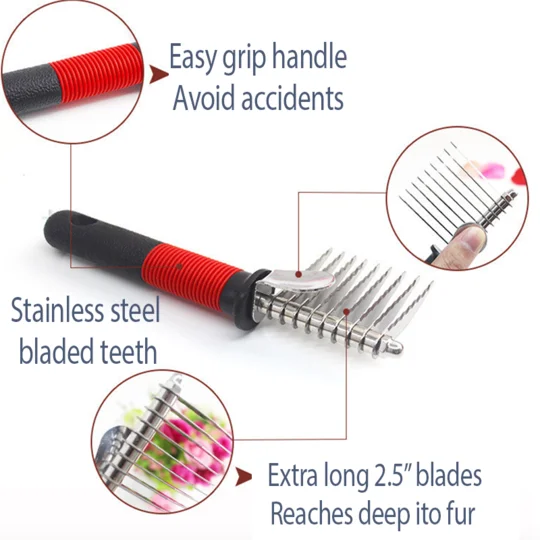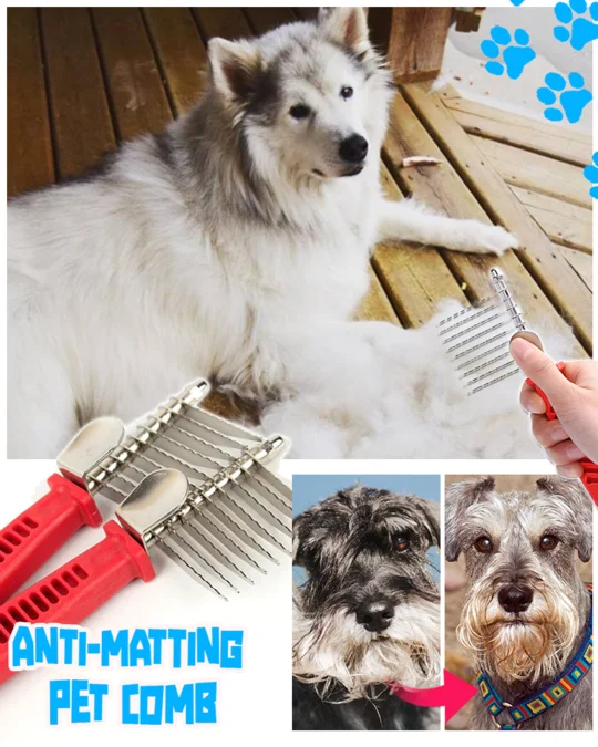 Anti-Matting Pet Comb is an INNOVATIVE COMB that is SPECIFICALLY DESIGNED to REMOVE MATTED HAIR of PETS. It is made of STAINLESS STEEL making it EXTRA DURABLE and LONG LASTING.