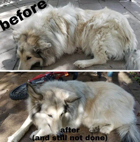 It can GO THROUGH KNOTS SMOOTHLY and PAINLESSLY. It has a LONG TEETH that PENETRATES DEEP into the UNDERCOAT while the SHORT TEETH COLLECTS the LOOSE HAIR.