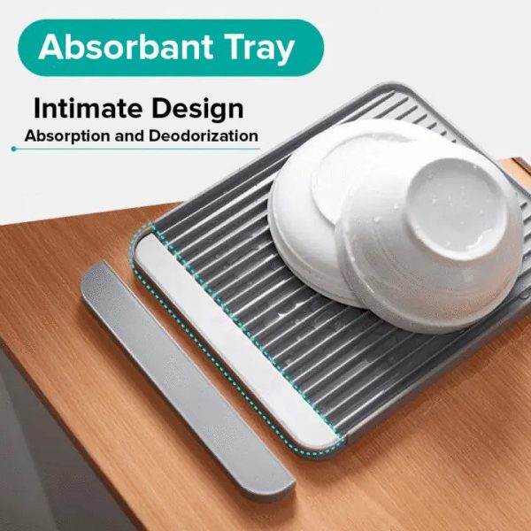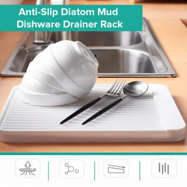 WANT A MESS FREE KITCHEN TOP AND CLEAN POTS, GLASSES, AND PANS? TRY OUR ANTI-SLIP DIATOM MUD DISHWARE DRAINER RACK!