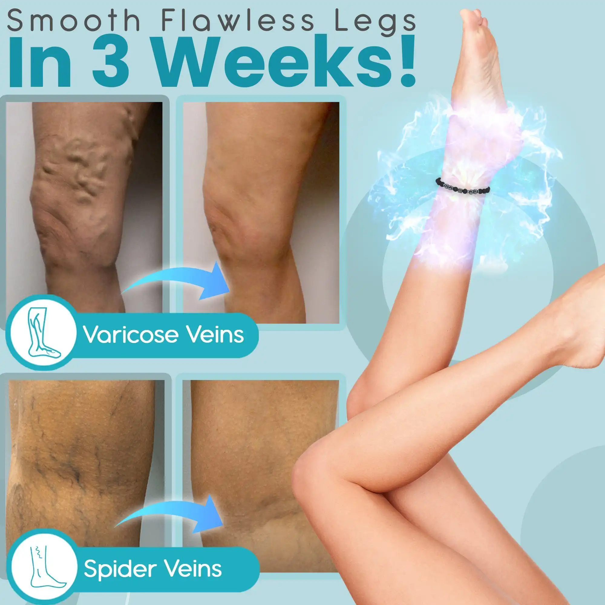 Say goodbye to varicose veins and spider veins! This magnetotherapy anklet returns your legs to their smoothest, most flawless state in 3 weeks!