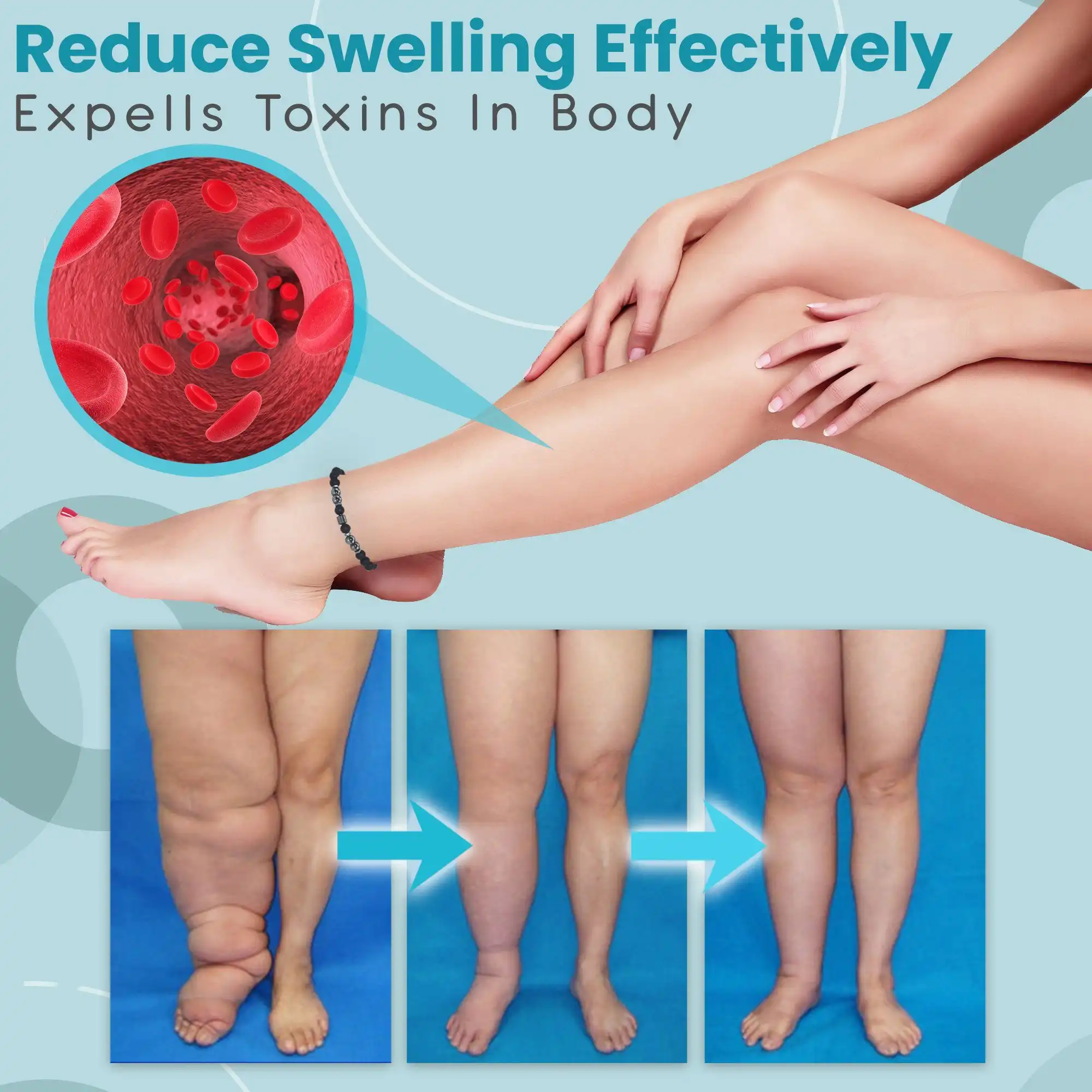 This magnetotherapy anklet uses micro-magnetism to redirect your blood to a smoother flow. By expelling toxins in your circulation system, it effectively reduces swelling and edema in 3 weeks!