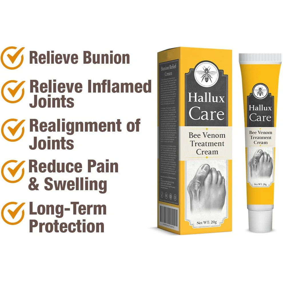 The HalluxCare treatment cream is expertly designed to relieve the problems associated with bunion, utilizing the potent properties of bee venom. Adolapin, a vital constituent of bee venom renowned for its profound anti-inflammatory effects.