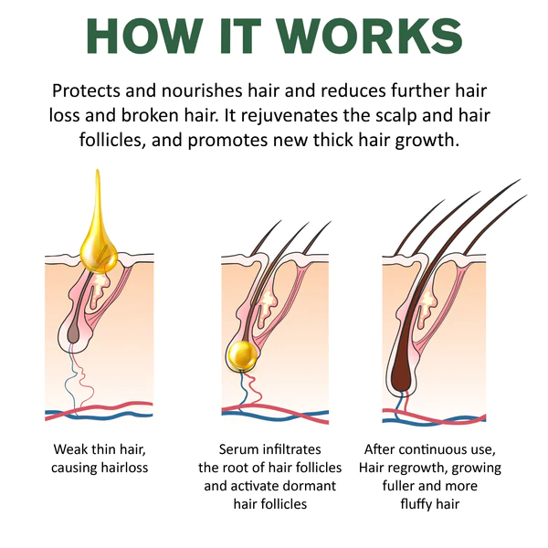 • Helps with hair loss and thinning.
