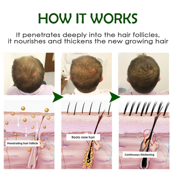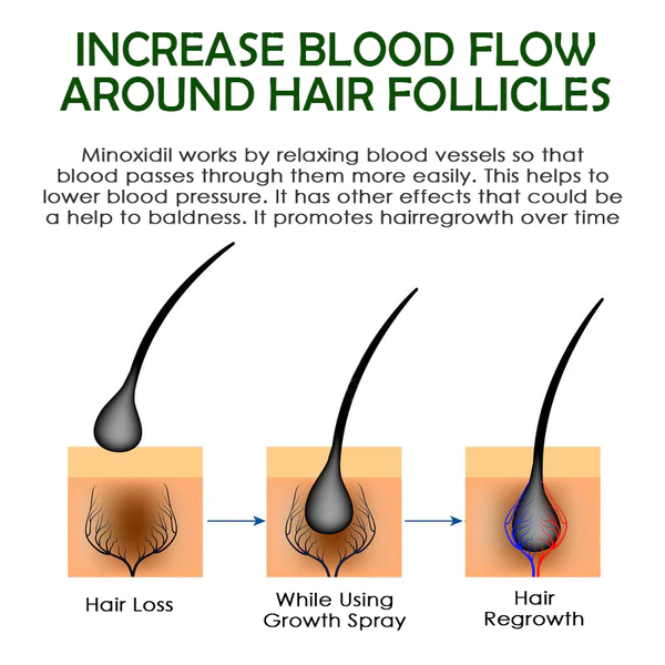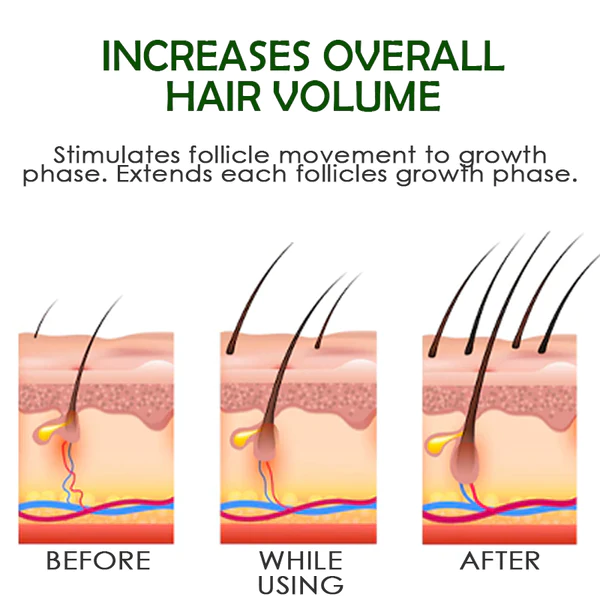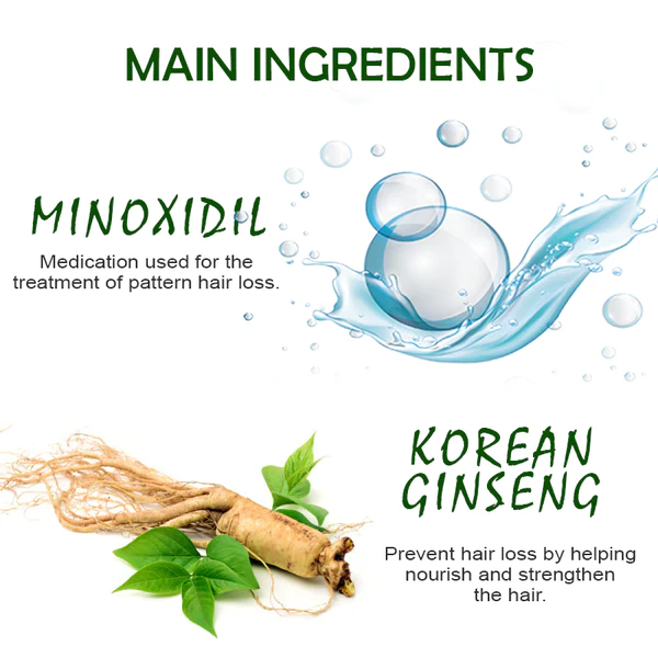 Minoxidil is a medication approved by the Food and Drug Administration for the treatment of hair loss. It dilates blood vessels and improves blood flow to the areas it is applied to, improving their ability to deliver nutrients and oxygen to hair follicles. Minoxidil also helps increase the size of hair follicles, promoting thicker, stronger hair growth. Minoxidil, a clinically proven hair growth agent, promotes cellular activity and stimulates the growth of thicker, revitalized hair. In clinical studies, 85% of participants using minoxidil experienced significant hair growth in just 2 months. This ingredient also helps to balance the oily scalp and increase hair volume as it re-nourishes the hair follicles. Minoxidil reduces further hair loss and breakage.