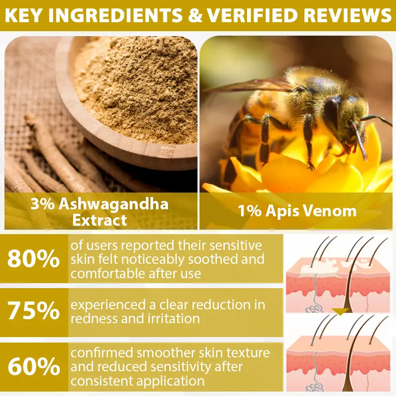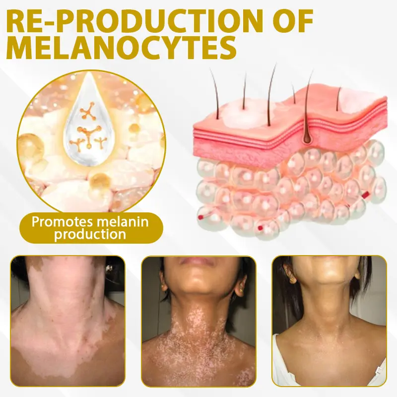 Apis venom in the formula delivers targeted immune modulation and skin regeneration support. Its key peptides, including melittin and apamin, help calm overactive immune responses that often attack melanocytes in vitiligo.