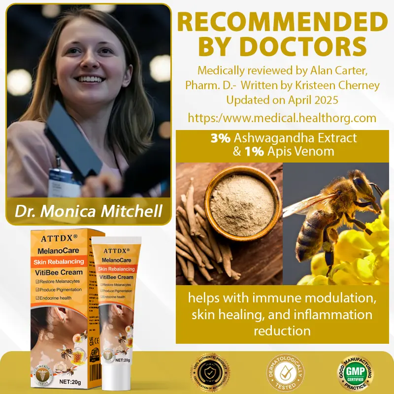 Certified by Dr. Monica Mitchell on February 16, 2025, ATTDX® MelanoCare Skin Rebalancing VitiBee Cream is clinically recognized for its unique dual-action formula that addresses pigmentation concerns associated with hormonal imbalance and immune dysfunction. The cream combines 2% Ashwagandha Extract and 1% Apis Venom—two botanical ingredients backed by endocrine and dermatological research. Ashwagandha helps regulate cortisol levels, restoring hormonal harmony and supporting pigmentation balance, while Apis venom aids in immune modulation and skin cell regeneration.