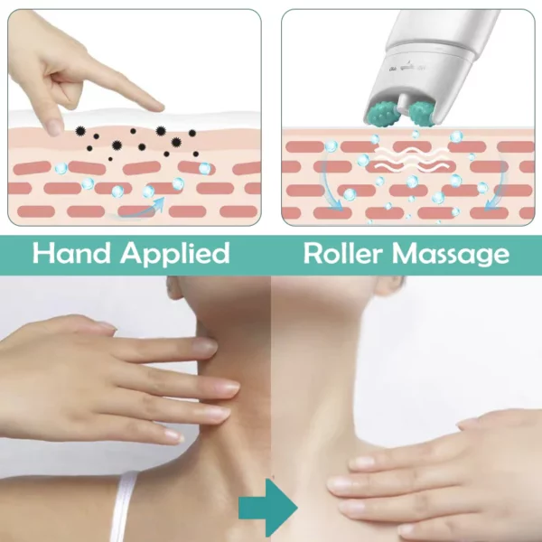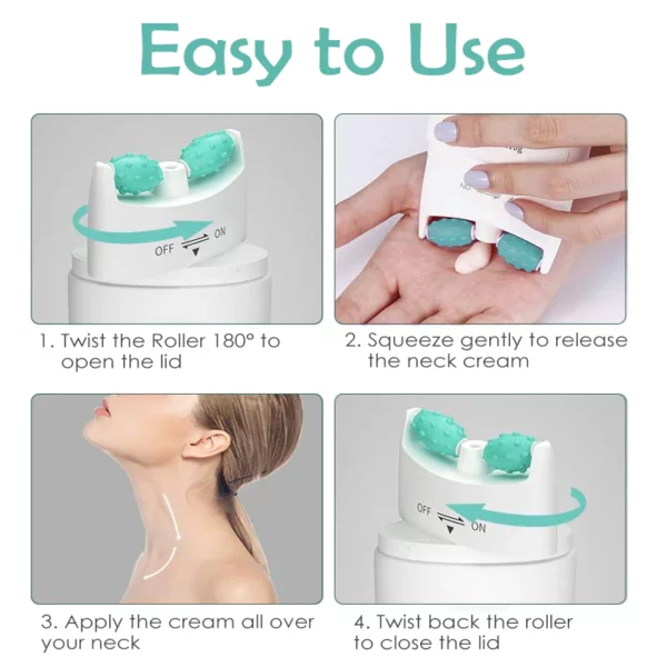 - Use the built-in massage head to roll up and down on the neck, apply the cream evenly, and massage until it is completely absorbed.