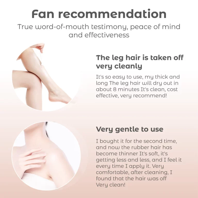 Gentle and hypoallergenic, enriched with plant extracts for a soothing and non-irritating experience. Infused with imported soothing ingredients, free from any irritants, ideal for sensitive skin. Effortlessly remove hair with our easy-to-use cleaning technology, leaving no dark spots or residue, and boasting a pleasant, fresh scent.