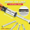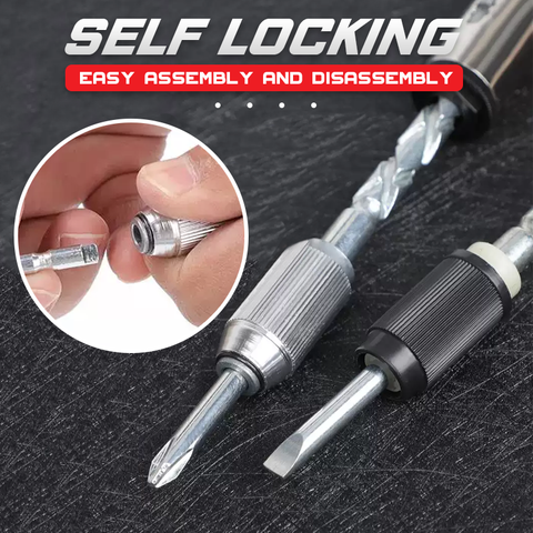 PUSH PULL RATCHET SCREWDRIVER Easily solves the problems of narrow space, deep screw position, and unreachable screw. Comfortable grip one-hand press operation, convenient and practical. Suitable for various occasions. SEMI AUTOMATIC SCREWDRIVER Simply press the handle and the spiral bar will automatically rotate to achieve the effect of tightening or loosening the screw, it’s much faster than other screwdrivers. There are 3 adjustable modes: loosen, tighten and fix, easy to use. SIMPLE ASSEMBLY AND DISASSEMBLY A simple self-locking type, pull back the lock housing to open the lock and insert the batch head. The self-locking shell can be fixed when rotating, suitable for handheld using. Made of strong and durable chromium vanadium alloy steel, rustproof and long lasting usage. Built with storage handle design for heads, small and portable, easy to carry and store in your tool box.