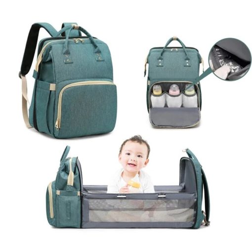 This stylish diaper bag combines as a travel crib, nappy bag, and portable baby changing station all in one It also can be used as a backpack, crossbody bag, handbag, or just hanging on a stroller. Very convenient to use and make your life much easier.