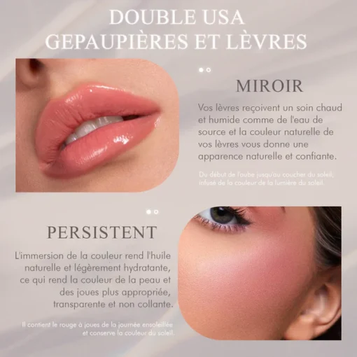 Imaginez un seul produit qui s’adapte sans effort à la température unique de votre peau, offrant la teinte parfaite de rose sur vos yeux, vos joues et vos lèvres. Ce merveilleux produit polyvalent promet non seulement la commodité, mais aussi une transformation délicieuse, garantissant que chaque application soit aussi unique et vibrante que vous. Embrassez le charme du maquillage naturel et lumineux qui évolue avec vous, faisant de chaque moment une opportunité de briller.