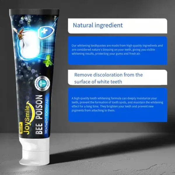BBOJI™JoySmile Bee poison Treatment toothpaste uses bee poison to naturally disinfect and kill bacteria deep within the gums, repair cavities, and continuously eliminate harmful bacteria. This continuous bactericidal action helps prevent further tooth decay and promotes long-term oral health.