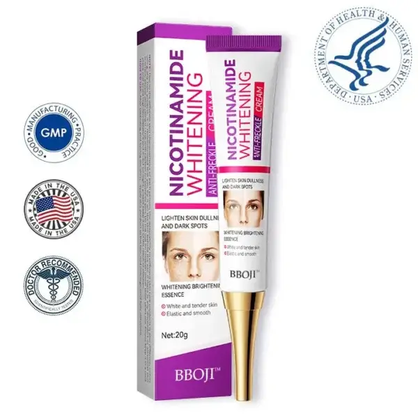 The formula of BBOJI™ Nicotinamide Cream is specially designed to target and reduce hyperpigmentation, dark spots, and uneven skin tone, delivering visible results in a gentle yet effective way to enhance skin brightness. It meets the highest medical standards of the FDA, EPA, USP, and more.