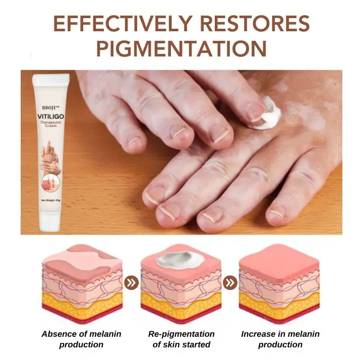 Pigmentation Restoration: BBOJI™ Vitiligo Therapeutic Cream effectively restores pigmentation, diminishing the visibility of vitiligo spots and promoting a more uniform skin tone.