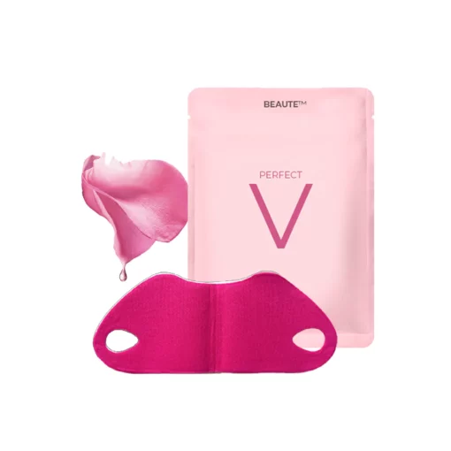 The Beaute Perfect V Lifting Premium Mask uses elastic stretch membrane cloth with a hydrogel layer that targets saggy skin and facial fat or swelling or Edema.