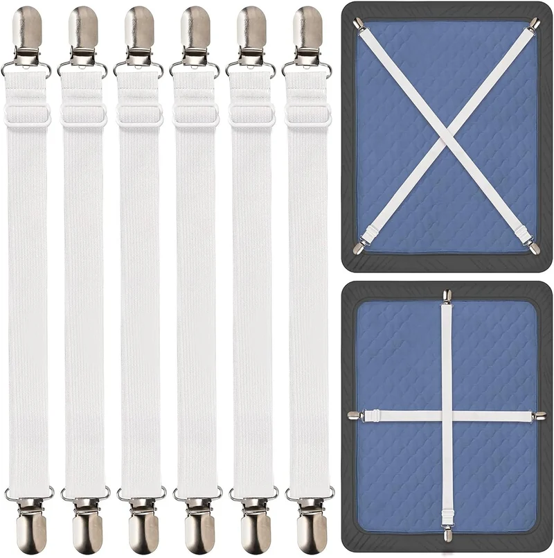 • 🌈PRACTICAL MATTRESS STRAPS: These versatile straps are a must-have for wrinkled sheet. They come in handy for securing flat or fitted bed sheets, as well as other covers, including hospital bed sheets, sofa cushions, mattresses, tablecloth covers, chair, boat, car, and motorcycle seat covers, ironing board covers, tablecloths, slipcovers, and more. Practicality at its finest!