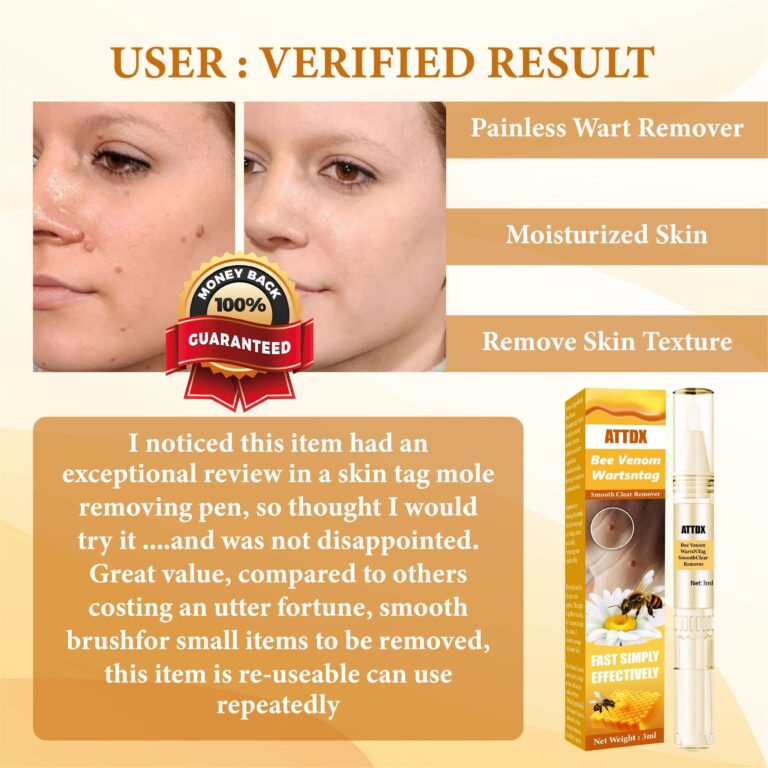 After struggling with stubborn skin tags for months, I decided to give ATTDX Bee Venom WartsNTag SmoothClear Remover a try, intrigued by its powerful formula. The bee venom in the product contains peptides and enzymes that work together to break down and remove unwanted skin growths. These ingredients help dissolve the skin tags and promote a healthier and smoother complexion. Within weeks, I noticed a significant reduction in the size and visibility of the tags. The product not only improved the appearance of my skin but also boosted my confidence, making me feel much more comfortable in my own skin.