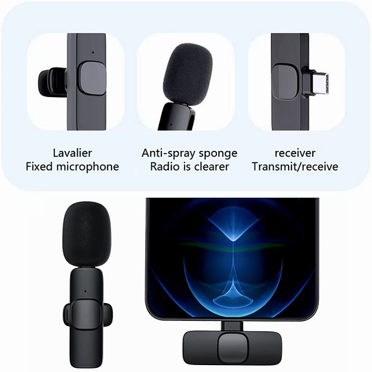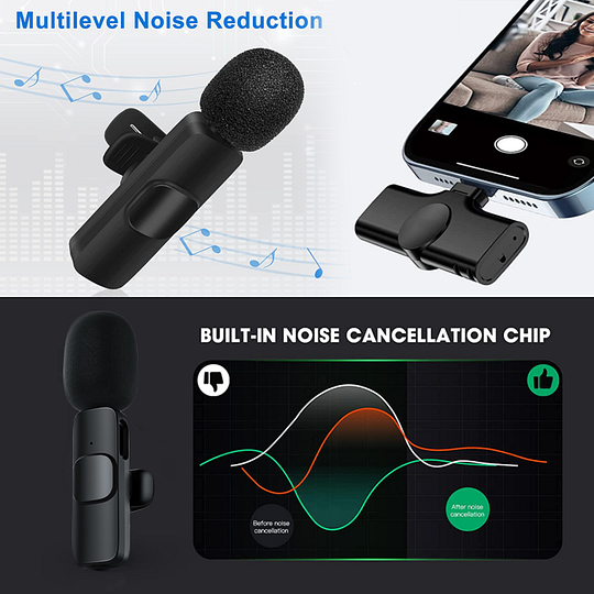 Wireless lavalier microphone with real-time clear voice auto-sync technology — plug and play, provides you with a professional and excellent mobile phone recording experience.
