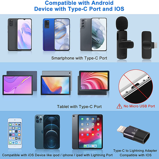 Compatible with iPhone/ iPad & Android smartphones, tablet with Type-C port. Designed for Youtube Live, Facebook Live, TikTok Creators, influencer, eat broadcast and teachers recorder, etc.