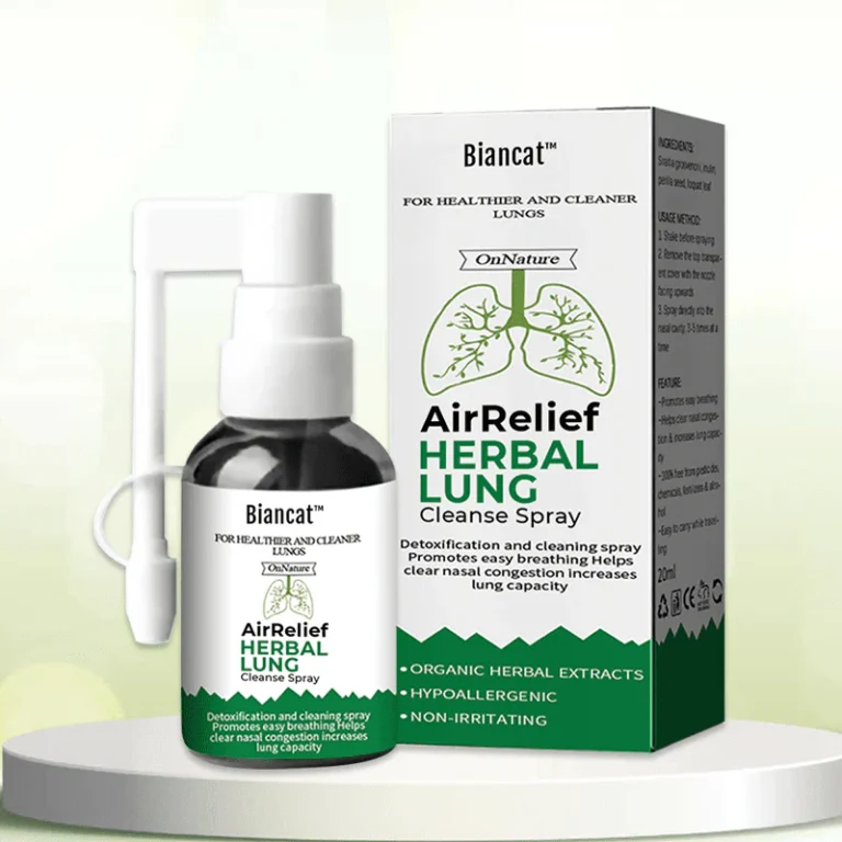 The Biancat™ AirRelief Herbal Lung Cleanse Spray offers a simpler method to facilitate the removal of mucus and waste from the lungs, purify the lungs and upper respiratory passages, and fully restore any harm caused by allergies, asthma, dust, and smoking within an 8-week period. It provides an opportunity for individuals with weakened respiratory systems to regain the ability to breathe effortlessly.