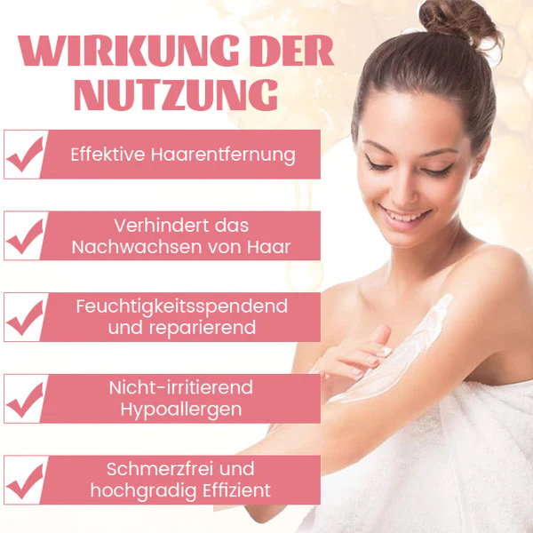 - Verhindert das Nachwachsen von Haaren und macht eine häufige Haarentfernung überflüssig