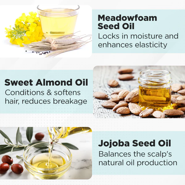 Meadowfoam Seed Oil: Locks in moisture, enhances elasticity, and adds natural luster to the hair.