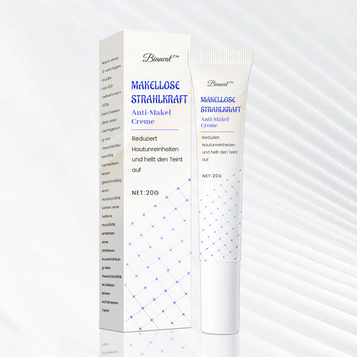 Entfesseln Sie das Potenzial Ihrer Haut mit Biancat™ Makellose Strahlkraft. Diese Wunder-Fleckencreme lässt dunkle Flecken verblassen und glättet den Hautton, wodurch schon nach 21 Tagen ein leuchtendes Strahlen enthüllt wird. Hergestellt aus natürlichen Inhaltsstoffen, ist sie perfekt für jeden Hauttyp geeignet. Verwandeln Sie Ihre Haut und schließen Sie sich der Strahlkraftrevolution an!