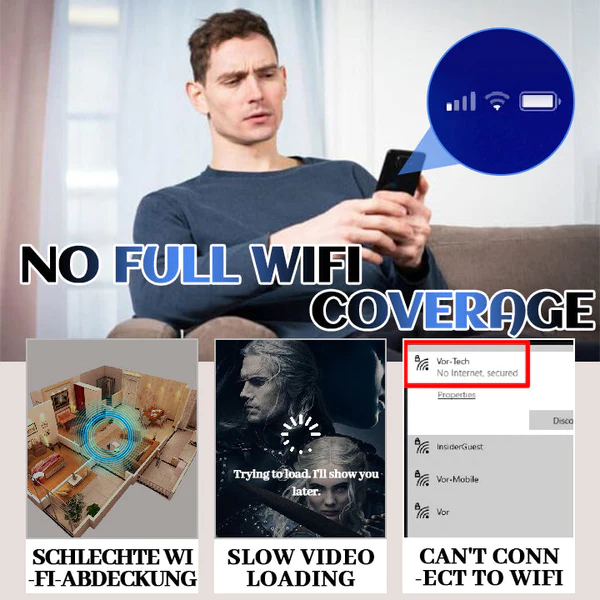 Your large house doesn’t get comprehensive WiFi coverage, the corner signal is weak causing slow video loading, and the router’s signalfails to penetrate walls, leading to freezing.
