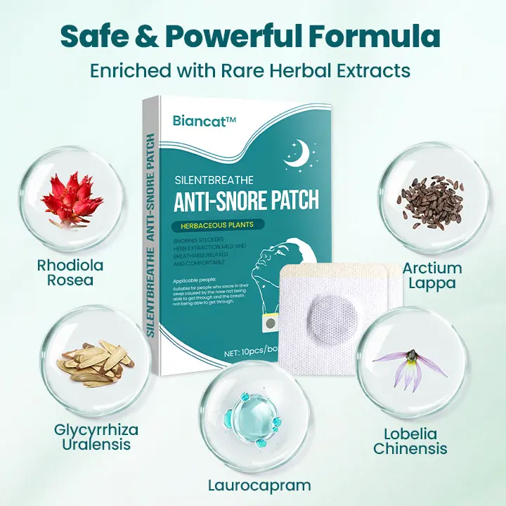Biancat™ SilentBreathe Anti-Snore Patch – Harnessing the power of herbal molecules and transdermal absorption, this innovative patch instantly clears your airway, allowing you to breathe effortlessly.