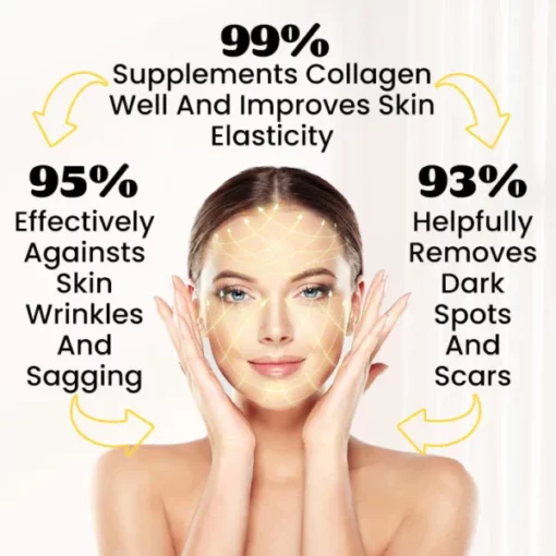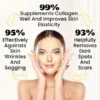 Collagen is an essential component of skin tissue and gives the skin its elasticity and firmness. It fights against sagging facial skin, making the skin look younger. Additionally, it has antioxidant capabilities, neutralizing free radicals, slowing down the aging process, and preventing skin sagging and wrinkle formation.