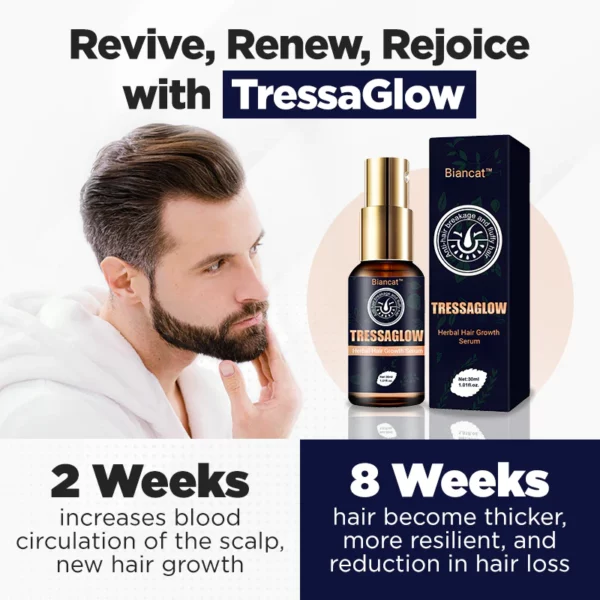 Biancat™ TressaGlow Herbal Hair Growth Serum is not just another hair growth product; it’s an experience. Carefully crafted with natural ingredients, it nourishes the scalp, strengthens hair follicles, and promotes new growth. Imagine a life without the constant worry of hair loss – that’s what TressaGlow offers. It’s more than a product; it’s your pathway to a new life.