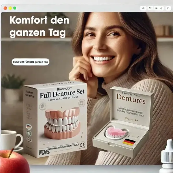 Ich habe das Bikenda™-Set bestellt, und ich bin begeistert! Die Anpassung war einfach und perfekt. Es fühlt sich an, als ob ich meine echten Zähne wiederbekommen hätte. Das Produkt hat mein Selbstvertrauen wiederhergestellt – ich lache jetzt wieder ohne Sorgen!