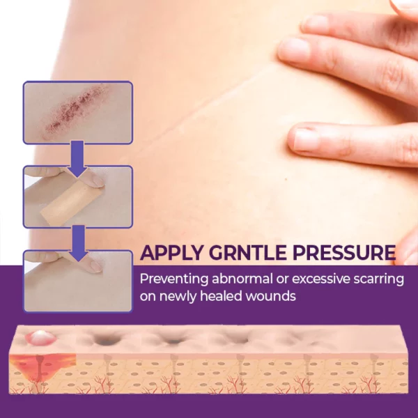 These easy-to-use, self-adhesive silicone sheets apply gentle pressure and coverage on the scar, creating a barrier between the scar and the external elements and keeping the area protected, moist, and hydrated.