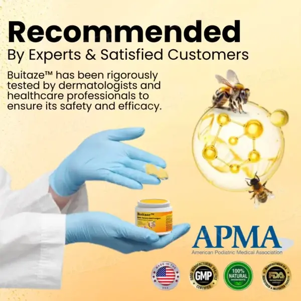 Buitaze™ Bee Venom Nail Fungus Treatment Cream is backed by leading dermatologists and fungal care specialists for its exceptional safety and proven results. Developed with expert insights, Buitaze™ has undergone stringent testing to ensure it effectively eliminates nail fungus while promoting healthier, stronger nails.