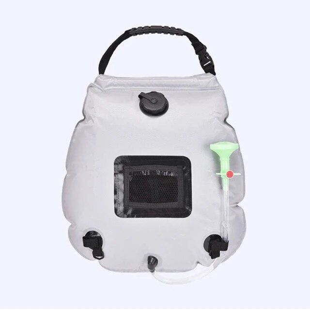 Package Includes 1 x CampShower Camping Water Bag, 1 x Hanging Strap, 1 x Plastic Tube, 1 x Hose with Shower Head, 1 x Net Bag.