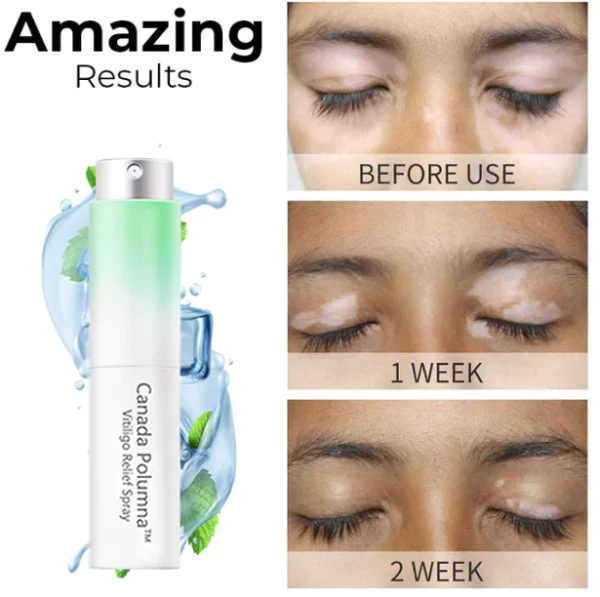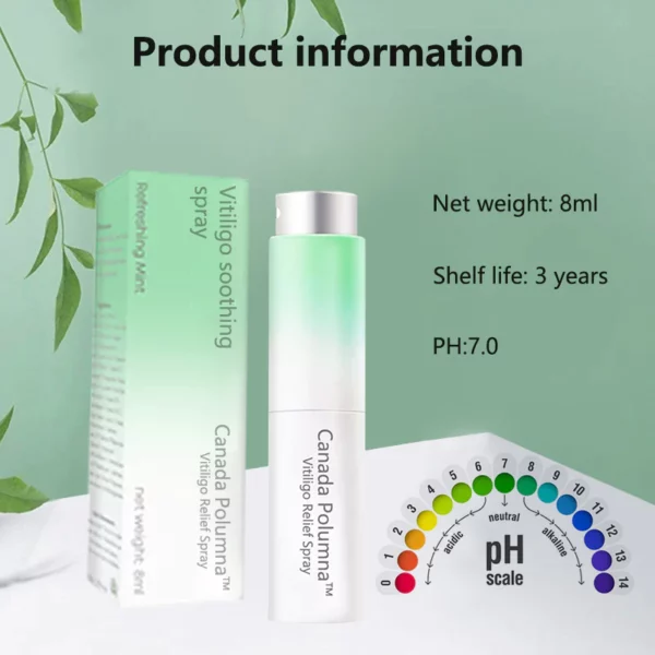 Canada Polumna Vitiligo Relief Spray helps Improve the physiological balance of melanocytes and keratinocytes in the vitiligo epidermis. Regulates skin pigmentation with its natural formula that can regulate pigmentation, repair vitiligo, and promote melanin recovery.