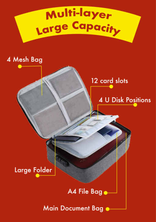 Consists of 3 layers with multiple compartments of different sizes which can accommodate documents, certificates, files, and more items! Keep your files safe, tidy and well organized