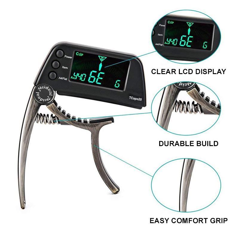 Easily tune your guitar with this Digital Guitar Capo and Tuner!