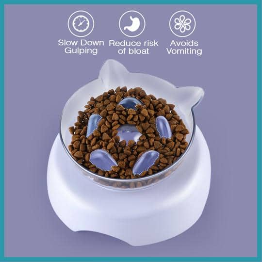- Raised bowl to help prevent indigestion and stomach discomfort and also slows down feeding speed to prevent overeating.