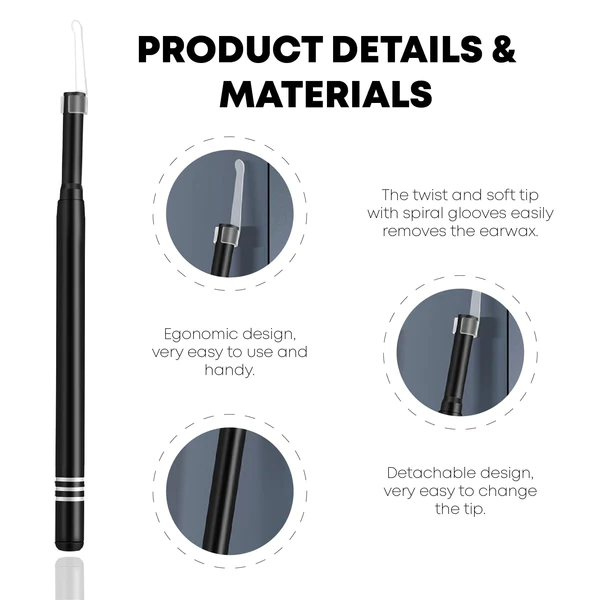 The Ear Wax Remover with Camera and Otoscope Cover, a new version of the Ear Wax Remover, adds a base and an otoscope cover to achieve storage and display integration, and also solves the problem of the lens adhering to dust or being scratched affecting clarity without the cover.