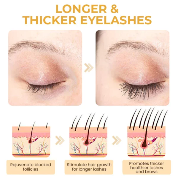 The potent formula of the serum allows it to quickly penetrate the skin, reaching the root of each lash. Upon application, it goes to work, nourishing and revitalizing the follicles to stimulate healthy lash growth. By activating dormant follicles, it promotes the emergence of new, fuller lashes, enhancing both the length and thickness of your natural lashes.