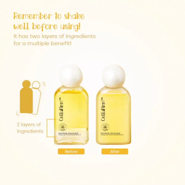 A revolutionary product designed to enhance the overall appearance of your skin. This unique formula combines the benefits of cellulite reduction and sagging skin tightening to help you achieve the smooth, firm skin you desire. The cellulite reduction aspect of the formula specifically targets the accumulation of fat cells that lead to the unsightly dimpled appearance commonly known as cellulite. Our carefully selected active ingredients work to effectively break down and metabolize these fat cells, supporting the body in its natural elimination process. Give CelluFirm Anti-Cellulite Natural Body Oil a try and experience the benefits for yourself!