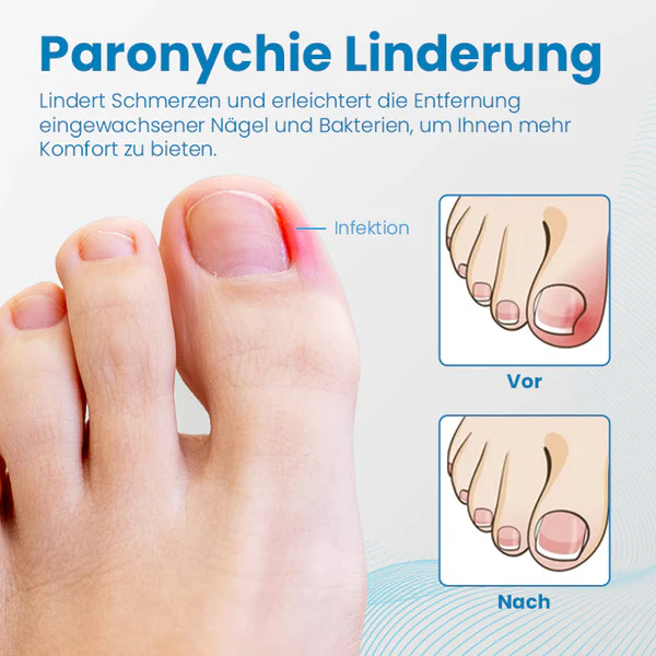 “Dieses Produkt funktioniert wirklich!!! Ich habe jahrelang mit eingewachsenen Zehennägeln gekämpft, aber nach der Anwendung von Ceoerty™ Anti-Paronychia Nagelbehandlungs-Gel wurde der eingewachsene Nagel an meinen großen Zehen entfernt und ist jetzt vollständig verheilt. Und ich bin so froh, dass ich dieses Nagelgel gefunden habe, denn ich kann die Verbesserung meiner Nägel deutlich sehen und sie sehen viel besser aus!” – Heather Hughes, Spain