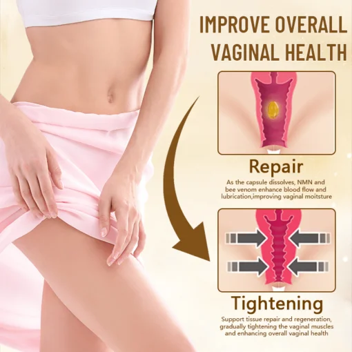 Ceoerty™ Bee Venom Vaginal Anti-Inflammatory Repair Capsules are inserted directly into the vagina, where they dissolve and release their active ingredients. The NMN and bee venom enzymes rapidly penetrate the vaginal tissues, boosting NAD+ levels to enhance blood flow, reduce inflammation, and support tissue regeneration. This targeted action helps to restore hormonal balance, alleviate dryness, and improve overall vaginal health, offering both immediate and long-term benefits.