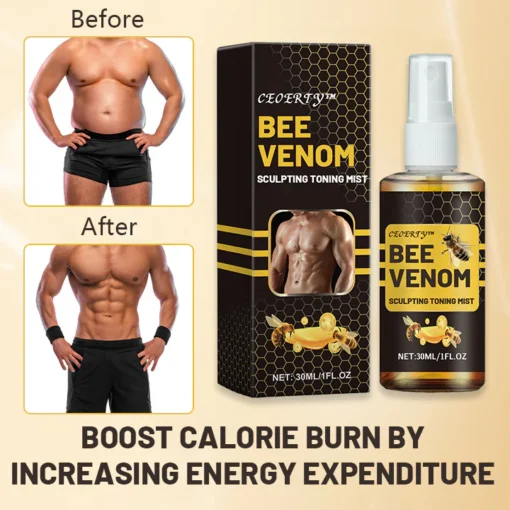 Ceoerty™ BeeVenom Sculpting Toning Mist harnesses the powerful benefits of bee venom to promote weight loss. Scientifically proven, melittin—the active compound in bee venom—has shown a remarkable ability to boost metabolism. By increasing your metabolic rate, your body becomes more efficient at burning calories, leading to a gradual reduction in stored fat. This enhanced fat-burning process supports your weight loss goals effectively.