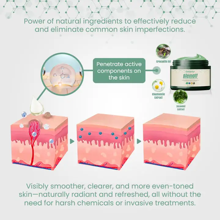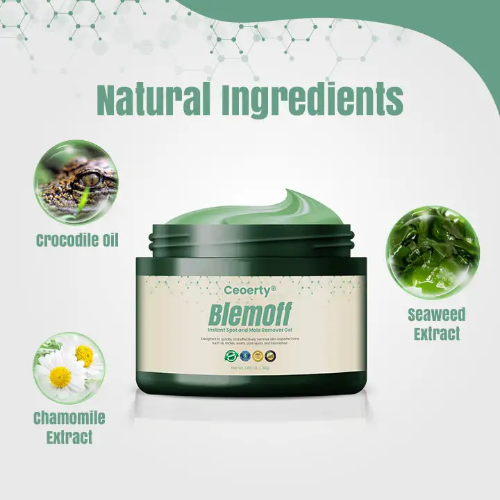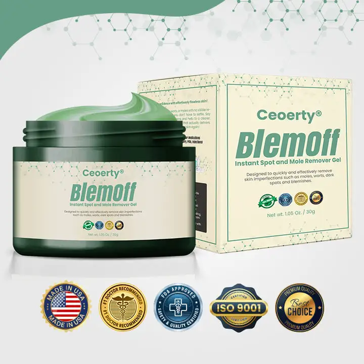 Ceoerty® BlemOff is a gentle, natural gel that helps remove moles, warts, and dark spots quickly and painlessly, leaving your skin smooth and clear.