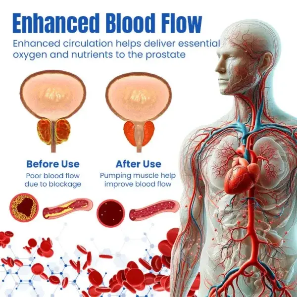 ✅ Enhanced Blood Flow: Boosts circulation to the prostate, ensuring the efficient delivery of oxygen and essential nutrients for optimal function.