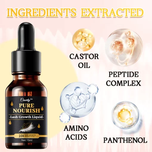 In our Ceoerty™ Pure Nourish Lash Growth Liquid, the power of science and nature combines to provide a comprehensive solution for rapid lash growth and overall health. Here’s a detailed explanation of the scientific principles behind our product: